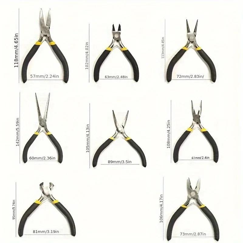 8 stk Minitangsett Lang nese med tenner Flat kjeve Rund buet nål Diagonalt nese Kutter for ender på ledninger Verktøy.