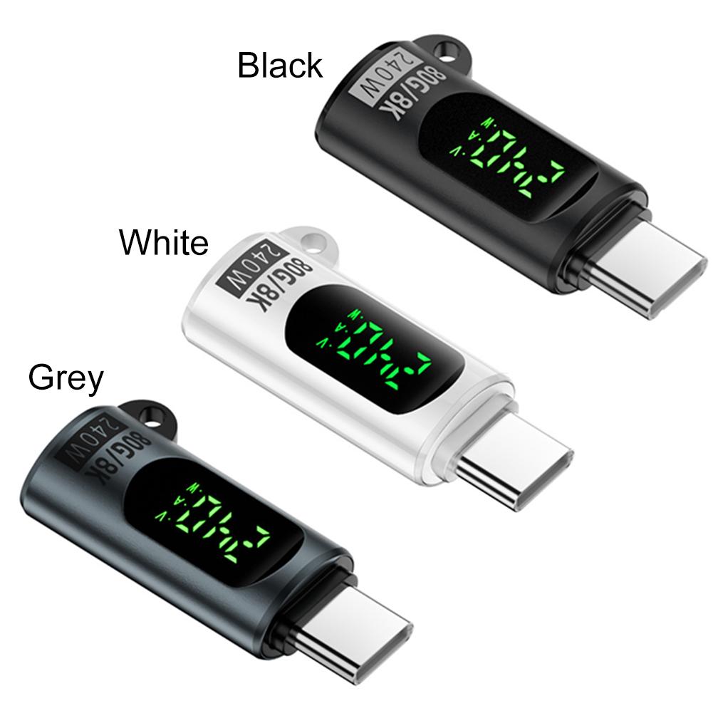 Digital skjerm Type-C-adapter 8K 60Hz strømmåler 80 Gbps PD 240W Type C til C-adapter Type-C smartadapter for iPhone 16 Grå