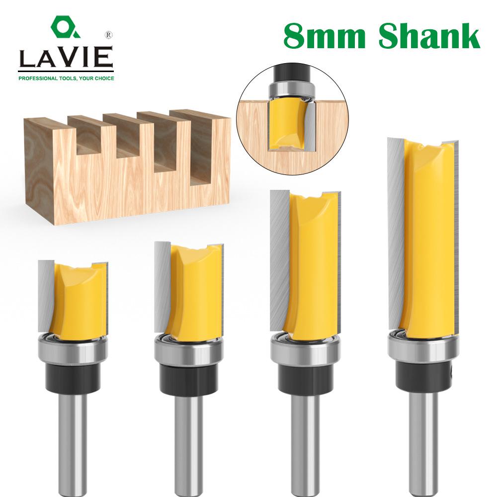 4-delige set vlakfreesbits: Patroon- en rechte frezen voor houtbewerking met lagers