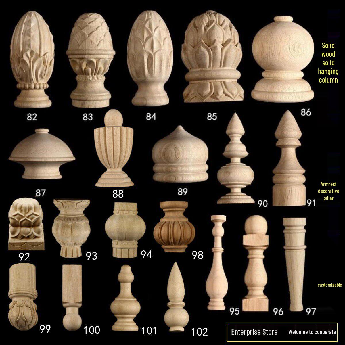Massief Hout Gesneden Ronde Bal Trappaal Decoratie: Oude Chinese Stijl Nachtkastje & Trappenhuiskolom