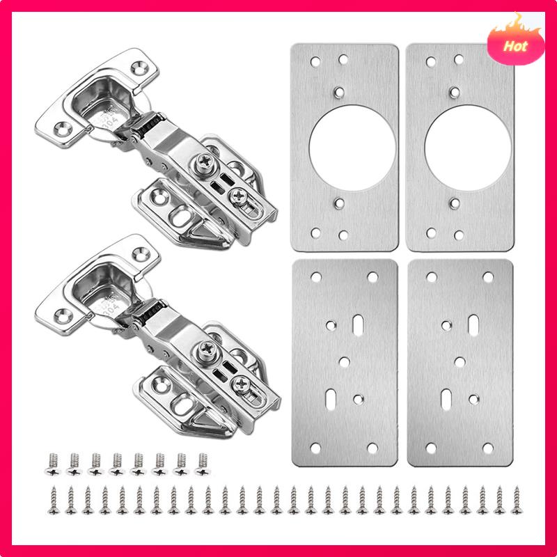 4-pakke skaphengsler reparasjonsplate med 2-pakke fullt overliggende myktlukkende skaphengsler - Hengselreparasjonssettplate for skap, slitesterk sølv