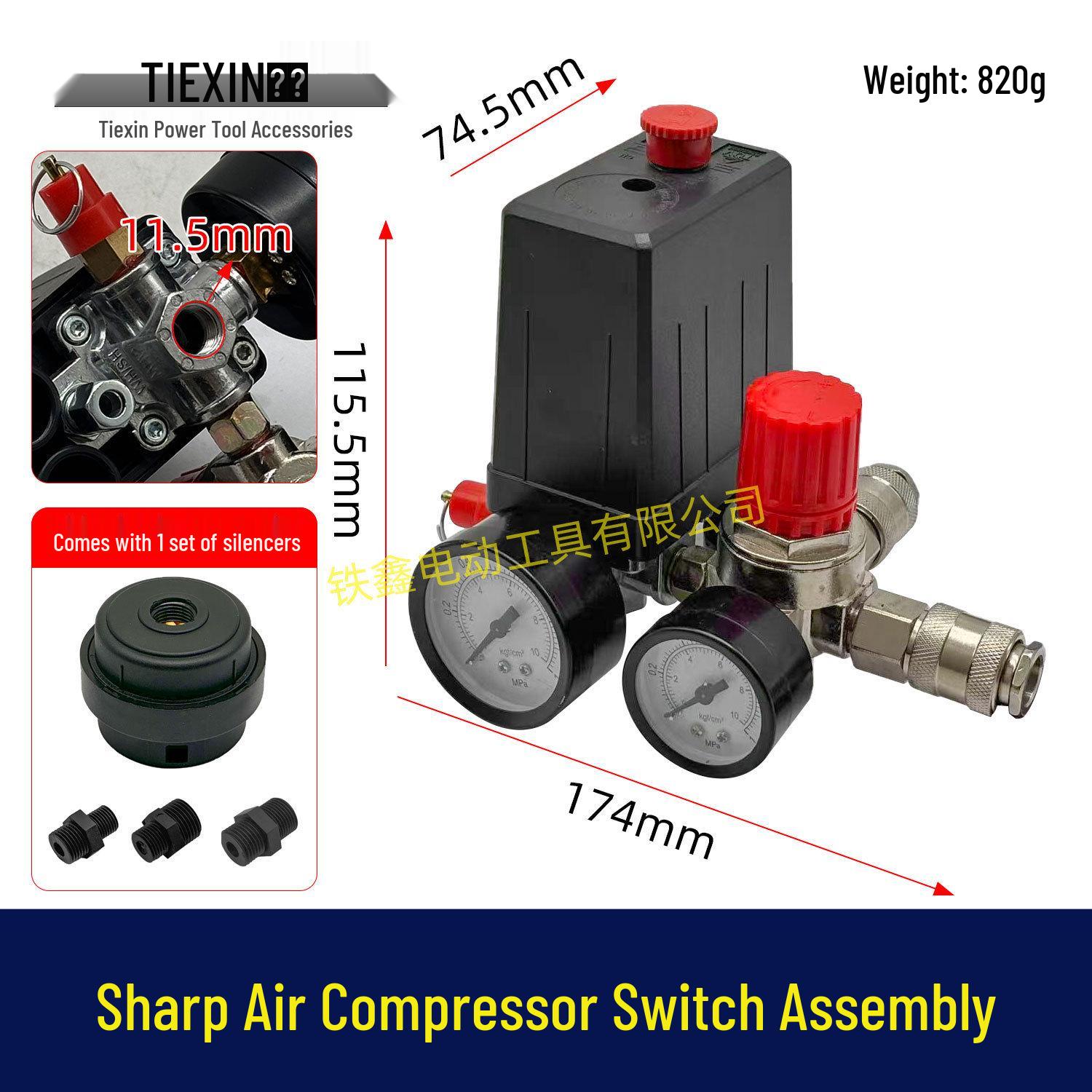 Sharp 4-veis luftkompressorbryterenhet med trykkmåler og lyddemper 07604
