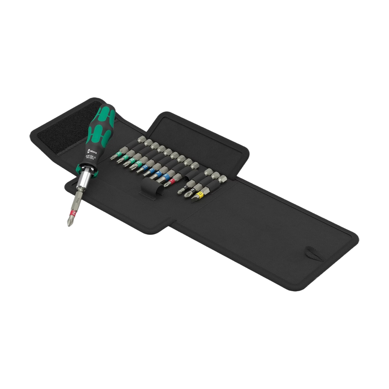 WERA Werkzeug-Set Kraftform Kompakt Bit-Bohrschrauber mit Ratschenfunktion 1/4" | 14-teilig