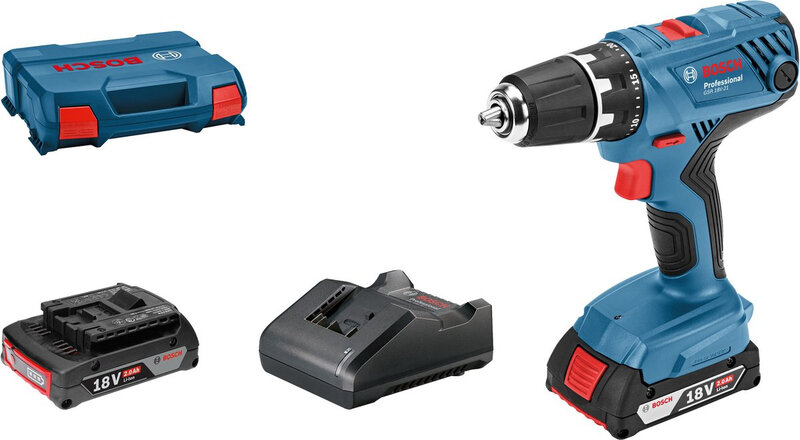Bosch GSR 185-LI PROFESSIONAL Perceuse-visseuse 2× 2 Ah, GAL 18V-20, coffret 06019K3000