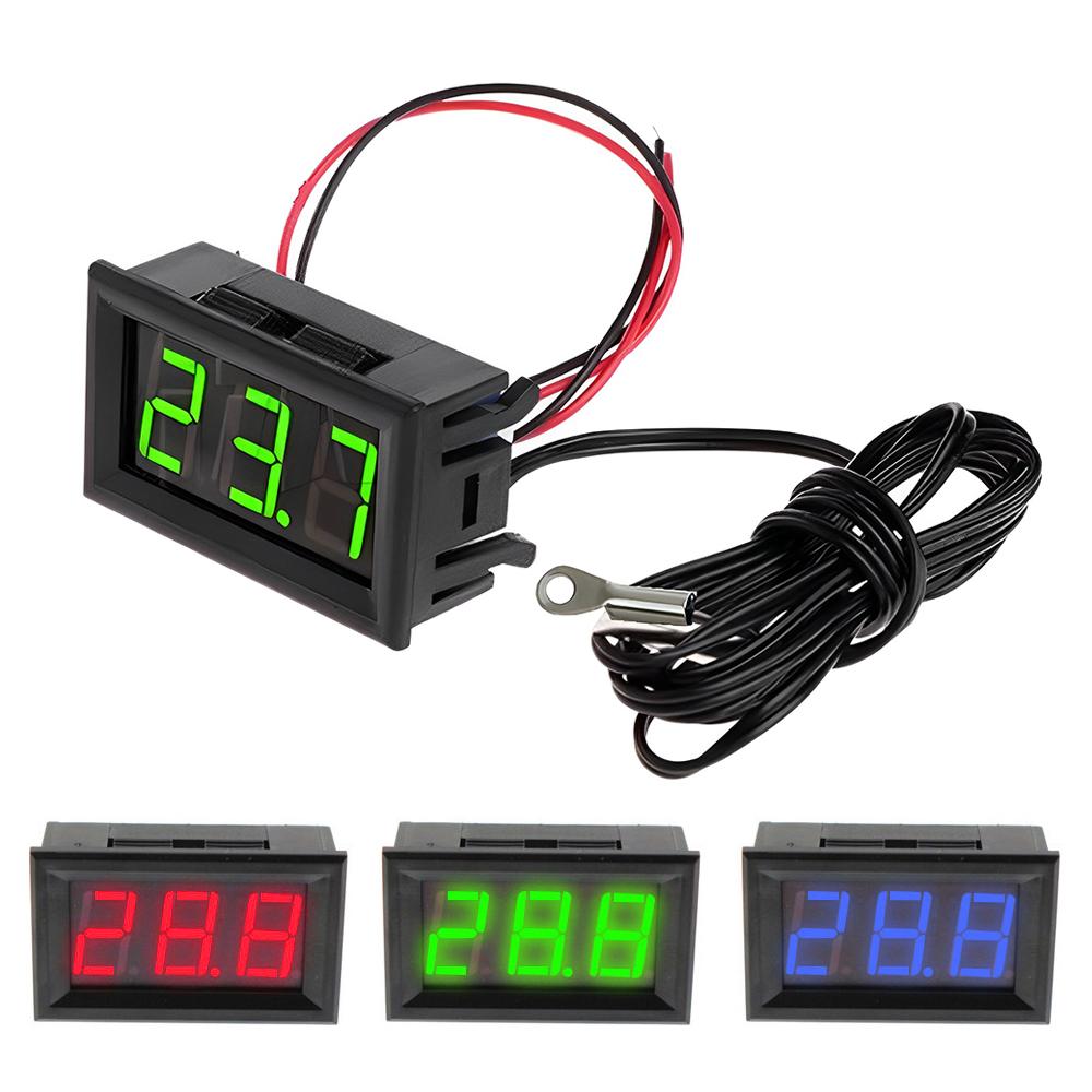 Digitalt termometer LED-display Fahrenheit Celsius DC 4-28V Høy nøyaktighet Temperaturmåler Sensor med vanntette NTC-prober som vist farge