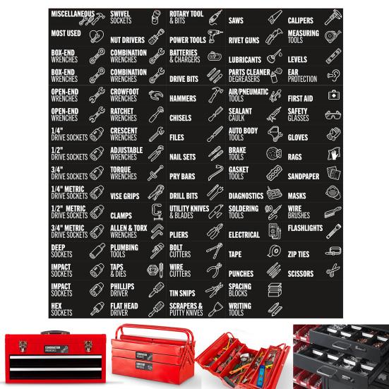 Yousheng 80Pcs Magnetic Toolbox Label Reusable Large Tool Chest Organizer Tag Steel Toolboxes Carts Drawers Cabinets Marker Organization Labels Rød