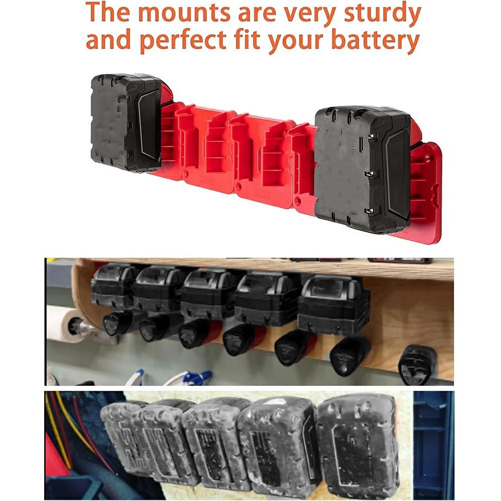 RIS-M-1 10Pcs For Milwaukee M18 18V Battery Holder Shelf Wall Mount Hanger Storage Rack