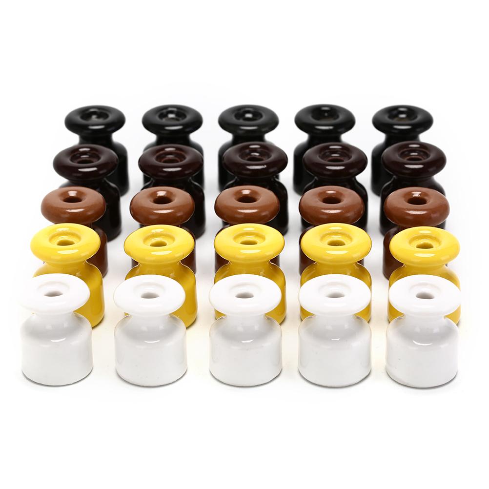 5 st Vintage Liten Keramisk Kabelklämma Isolator för Högspänningskraftöverföring God Kvalitet Porslinsrulle Isolatorer svart