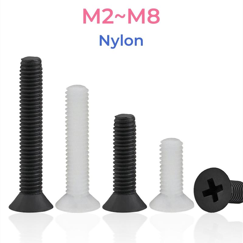 Schwarz Weiß PA66 Nylon Senkkopfschraube M2 M2.5 M3 M4 M5 M6 M8 Kunststoff Phillips Flachkopfschrauben Bolzen weiß
