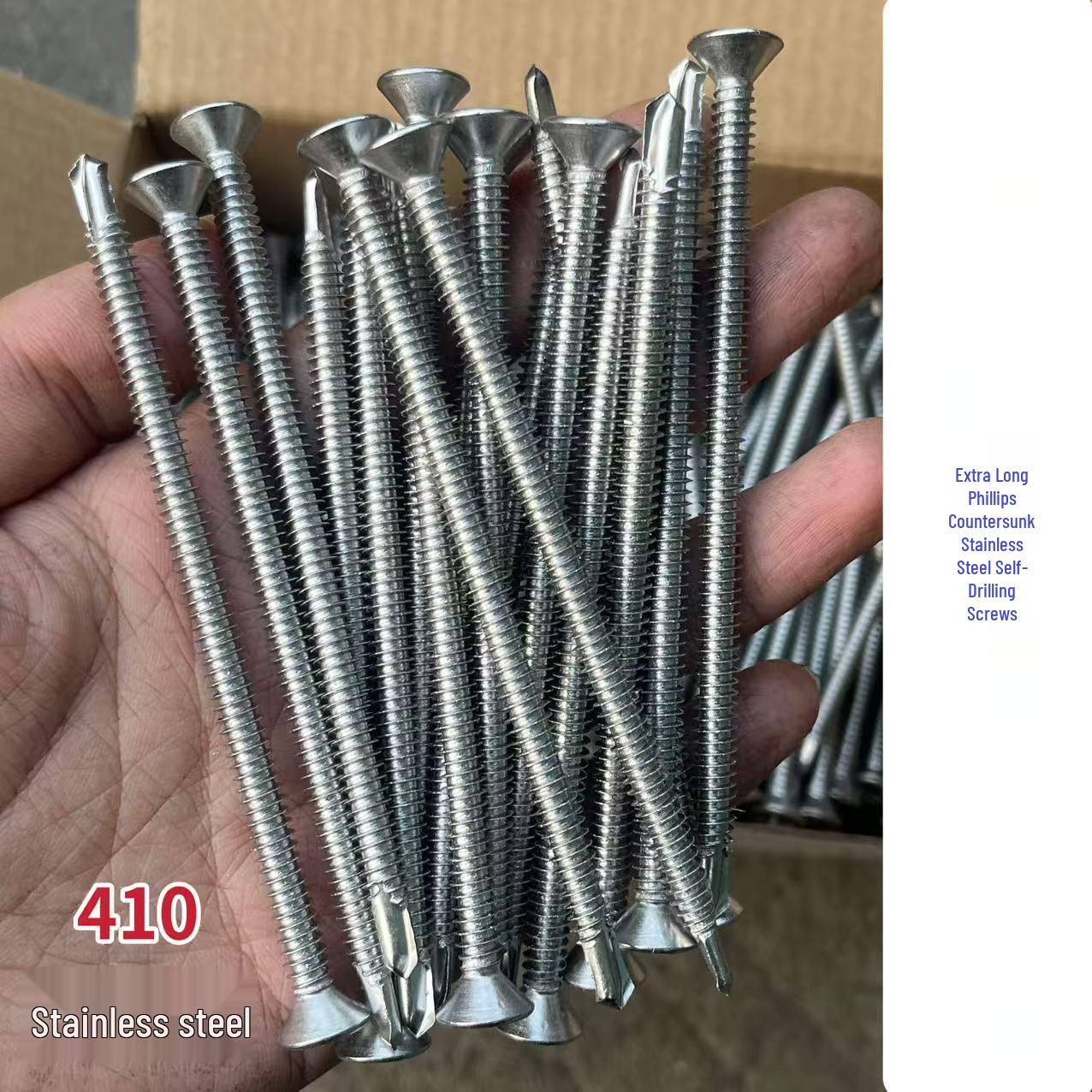 Śruby samowiercące ze stali nierdzewnej 410, extra długie, z łbem stożkowym krzyżakowym, do żelaza