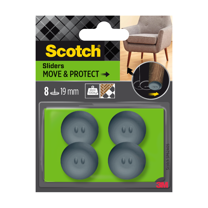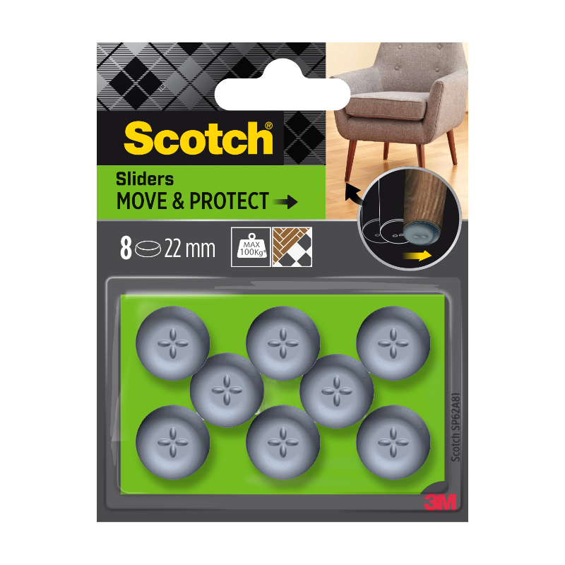 Scotch®Patin glisseur tout terrain adhésif Gris métal Ø 65 mm