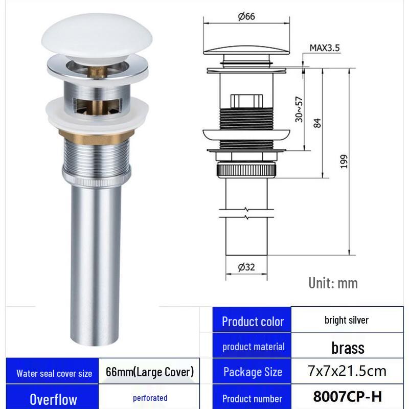 Bonde de Lavabo Pop-up en Acier Inoxydable avec Couvercle en Céramique