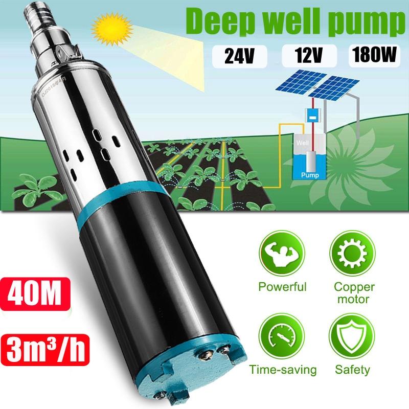 12V/24V DC 3m3/h 180W Solcellsdriven Djupbrunnsvattenpump Rostfritt Stål Dränkbar Pump