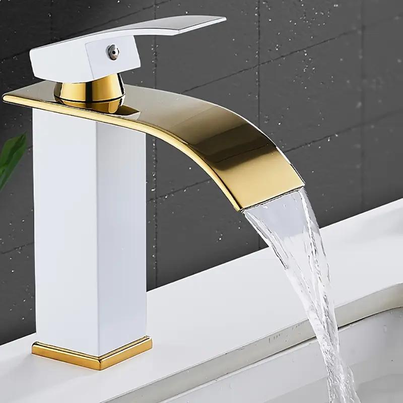 Nowy Luksusowy Czarny Biały Złoty Bateria Wodospadowa Ciepła i Zimna Podwójna Kontrola Wykończenie ze Stopu Stali Nierdzewnej Odpowiednia do Umywalki