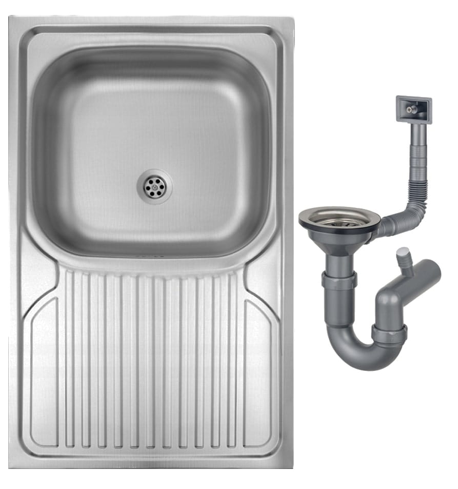 Jednokomorowy stalowy zlewozmywak nakładany 80x50 satynowy z syfonem Apollo