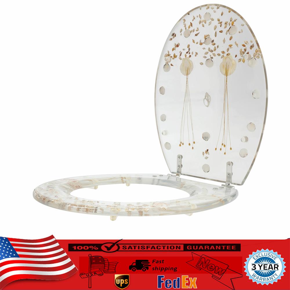 Toalettstol Långsträckt Transparent Harts Toalettstol Tyst Och Långsam Stängning Lock Lätt att Rengöra Hem Snäckor Dekor Silvergångjärn ren