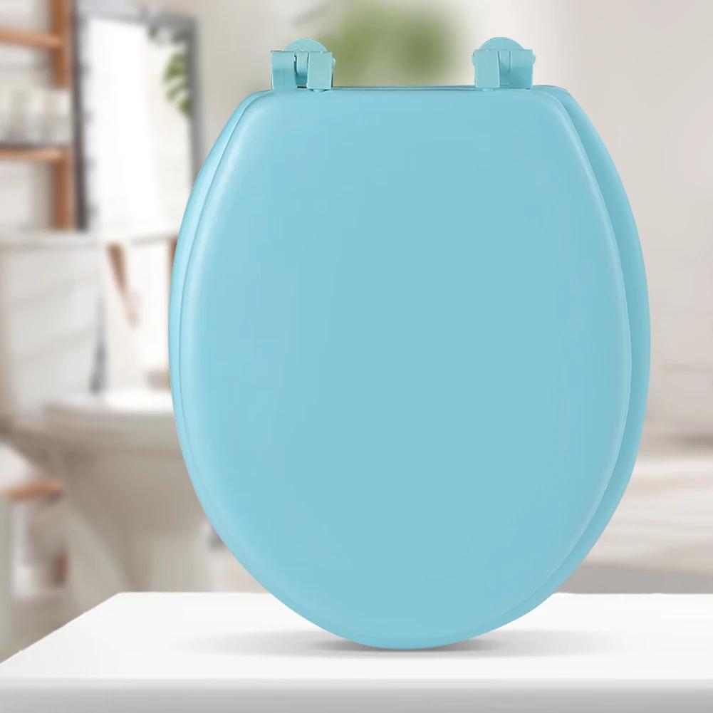 Bekväm rund toalettstol med mjukstängning och snabbkoppling, dämpat lock för standardbadrum blå