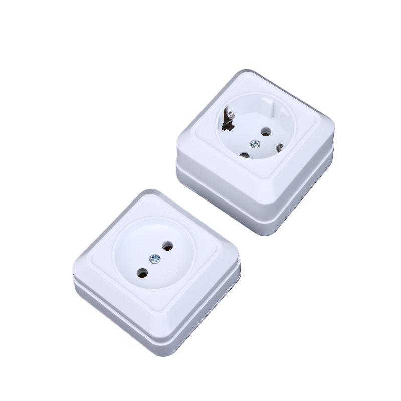 1 stk 10A EU-standard stikkontakt med jording, vintage utenpåliggende strømuttak, plugger, flammehemmende plast, veggmontert stikkontakt