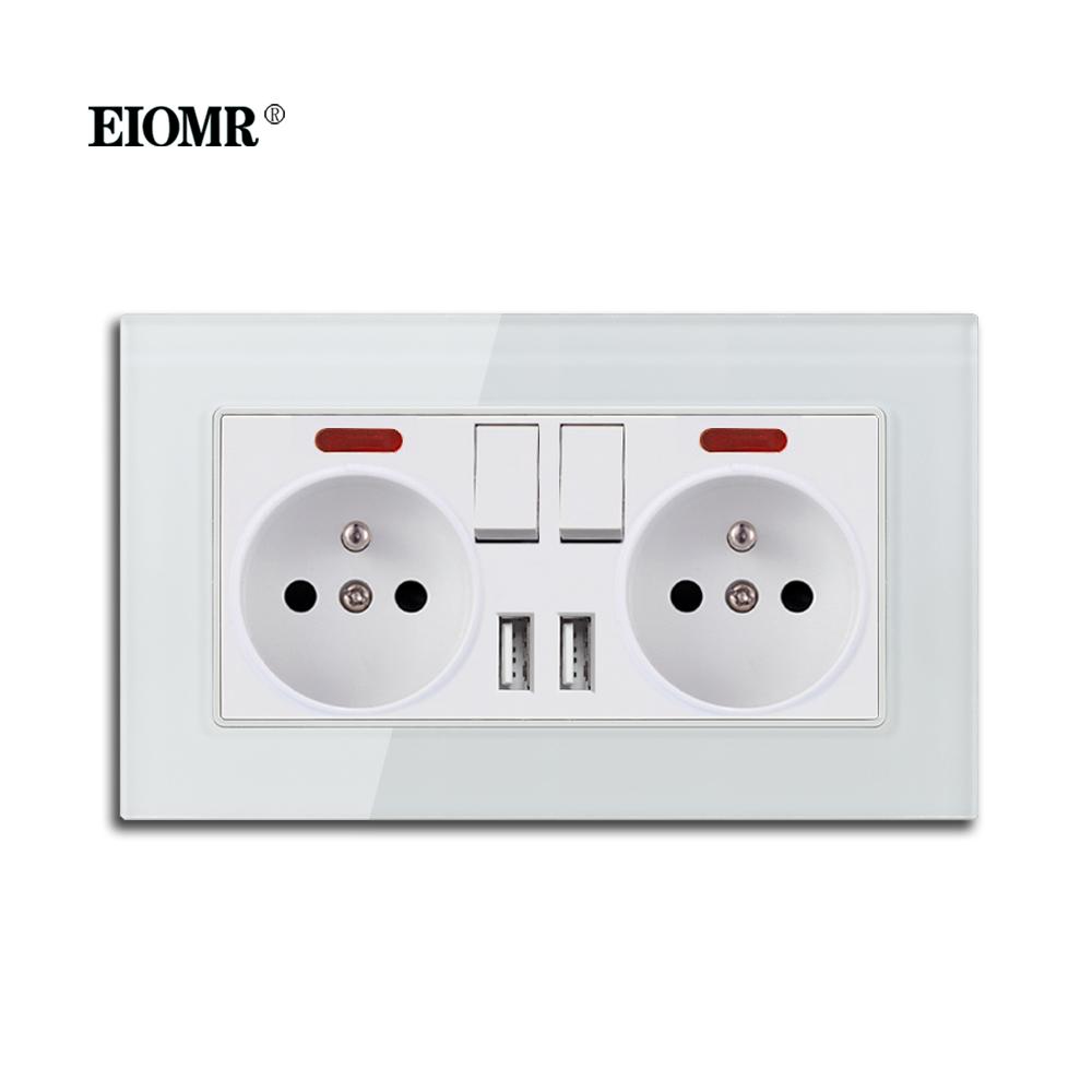 EIOMR EU Stikkontakter med USB 110~220V 16A Veggkontakt med Lysbryter Ingen Trekk i Støpselet Hjemmeinnredning
