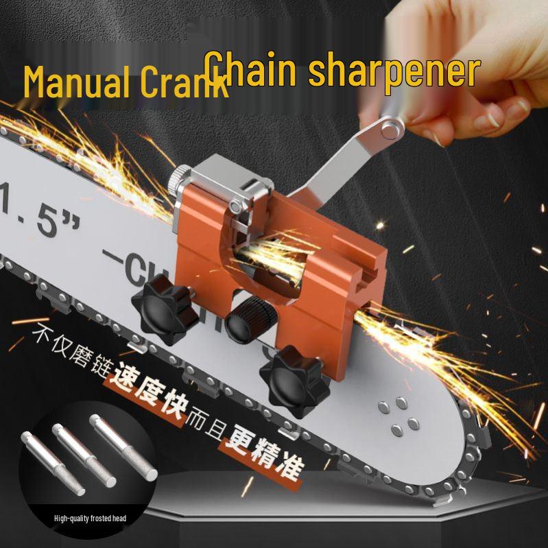 Håndsveivet motorsagkjedesliper og slipeverktøy