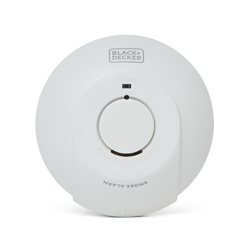Black + Decker Mains Smoke Alarm, 9V Battery Backup, Optical Detector, Interlink Alarms, Fast Fix Installation Base, Test Button, White
