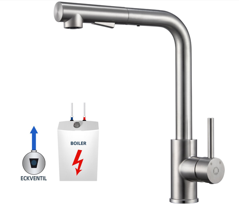 Cecipa Robinet de cuisine à basse pression, douchette extractible, pivotant à 360°, argenté