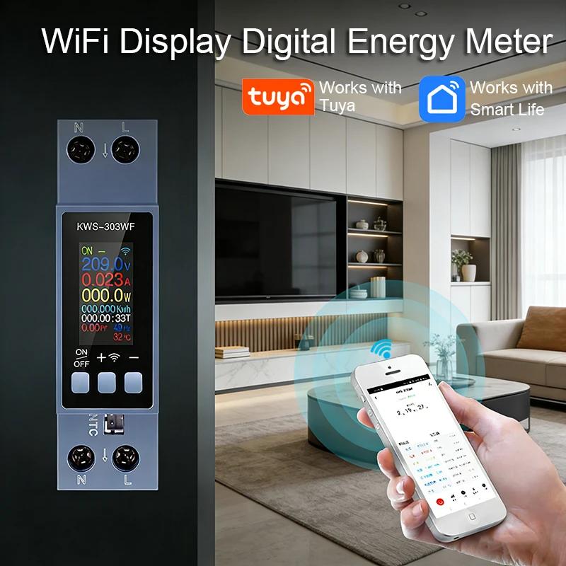 Tuya WiFi Strømmåler KWS-303WF DIN-skinne 2P AC Energimåler APP-kontroll 100-290V 40A Spenning Strømmåler Strømforbruksmåler Grå