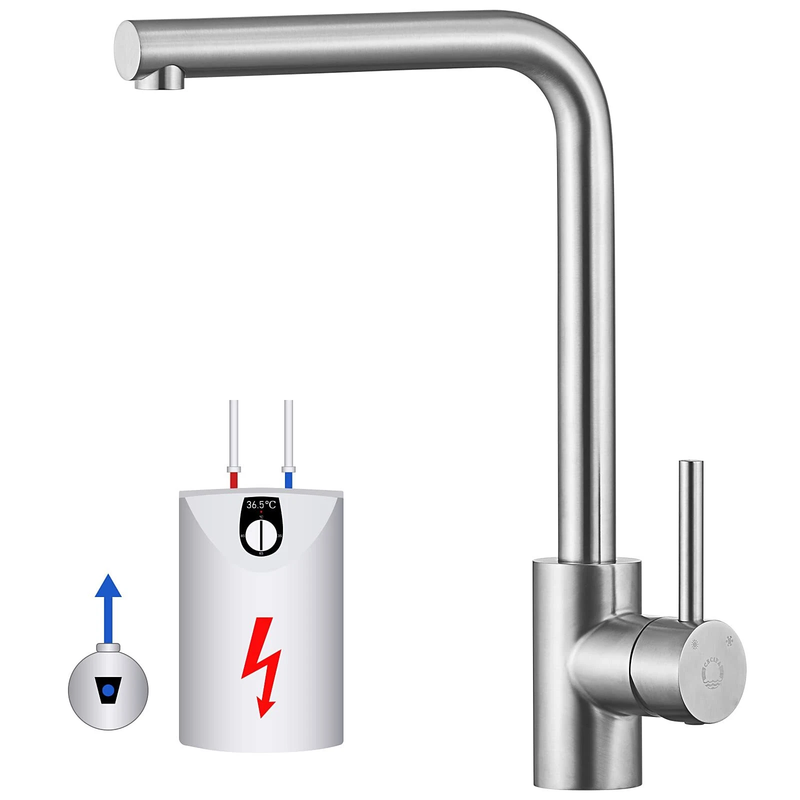 Cecipa Robinet de cuisine en acier inoxydable brossé, robinet d’évier pivotant à 360°