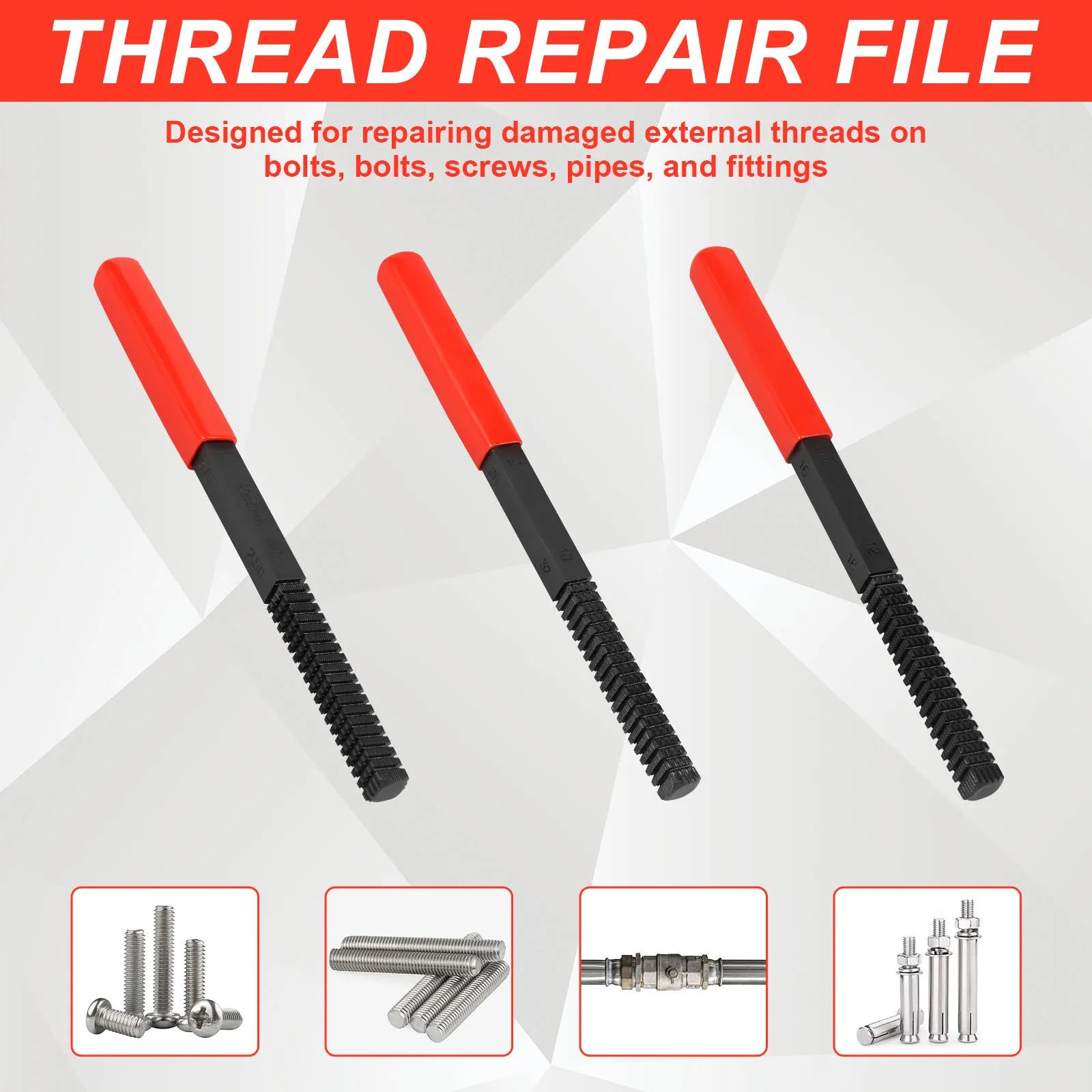 3 stk Gjengefil Høy Hardhet Gjengegjenoppretterfil Flerbruks Metrisk Gjenge reparasjonsfil Kraftig Stål Gjengegjenoppretterfil rød svart farge