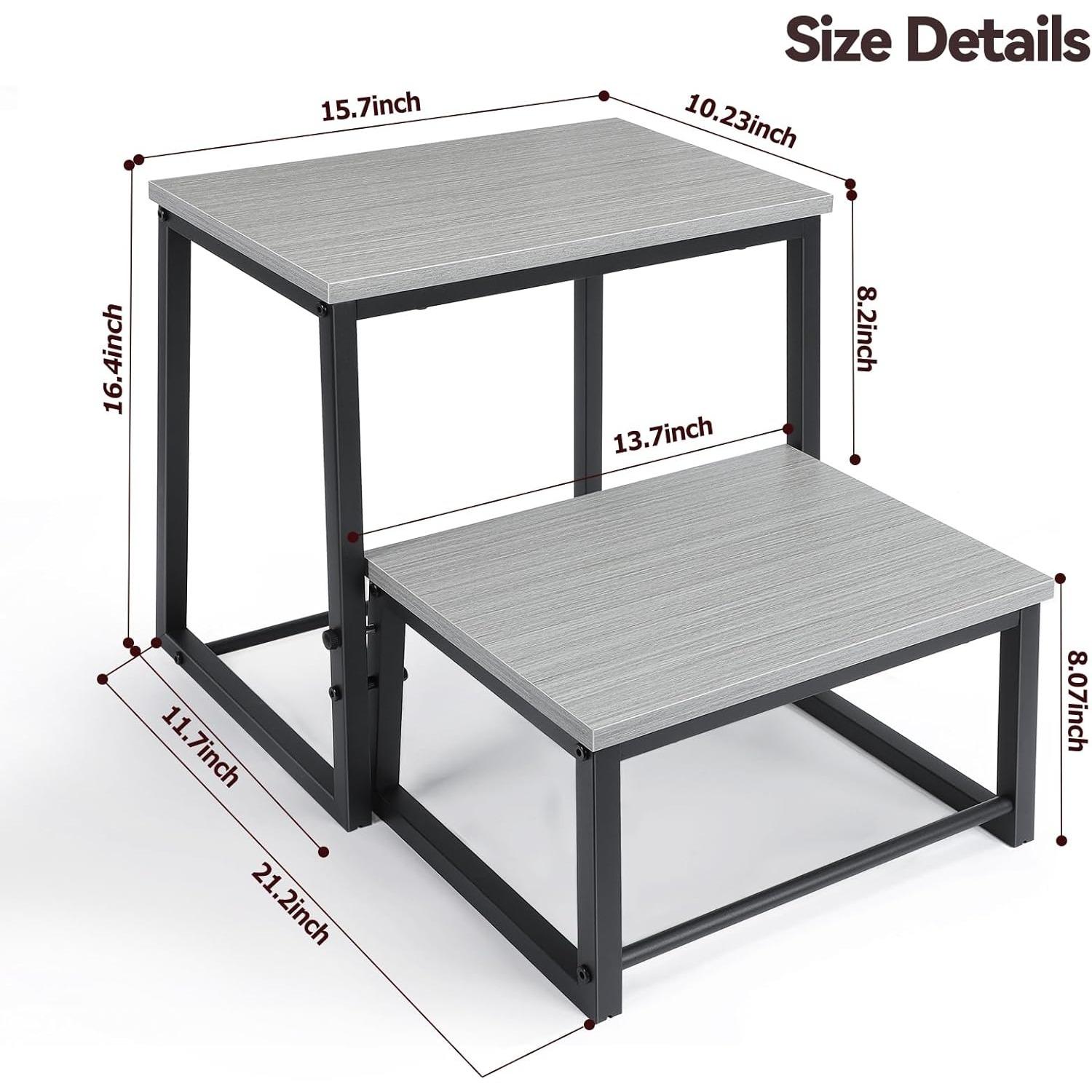 Kraftig 2-trinns krakk for voksne 500LB, Tre- og metallramme med sklisikre puter for kjøkken, bad, soverom, høy sengløsning Grå