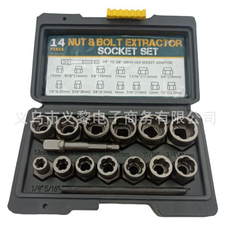 14-delat High-Style Set med Bult- och Skruvutdragare med Omvända och Glidande Tandhylsor