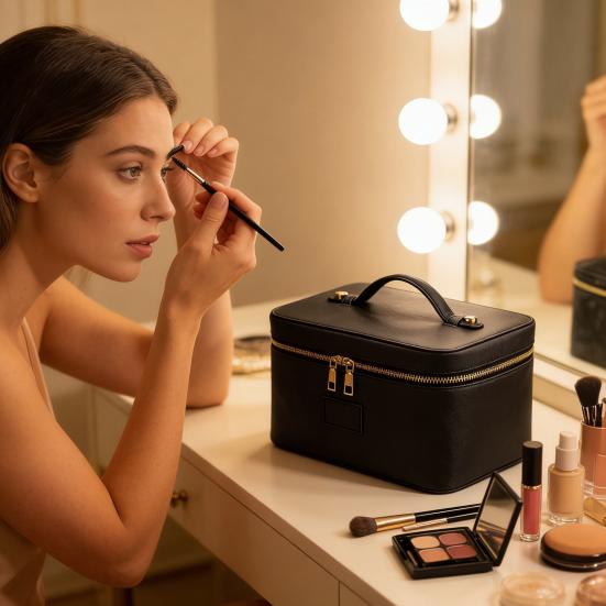 Trousse de toilette de voyage Organisateur de maquillage avec séparateur amovible Imperméable Faux cuir Trousse de maquillage Sac de toilette pour les