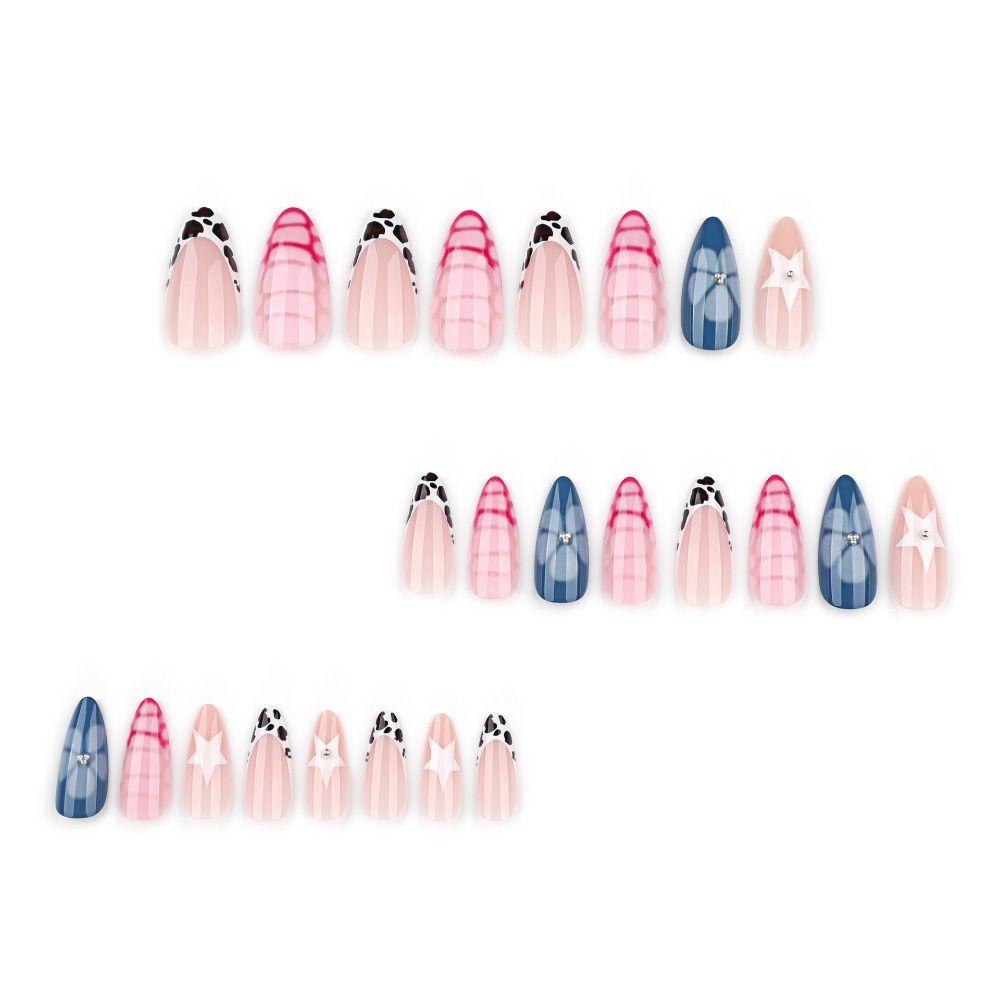 24 st Långa Mandelformade Falska Naglar Fransk Enkel Vit Blomma Press-on Naglar Avtagbara Rose Re Krokodilmönster Nageltips DIY