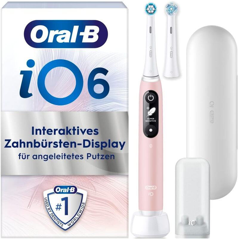 Oral-B iO Series 6 Sensitive Edition Elektrische Zahnbürste/Electric Toothbrush, 2 Aufsteckbürsten, 5 Putzmodi für Zahnpflege, Valentinstagsgeschenk für Ihn/Sie, Designed by Braun, pink sand