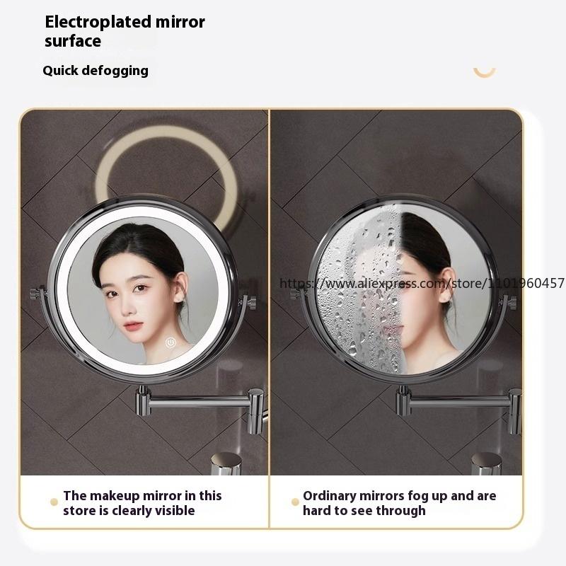 Baderoms Sminkespeil Veggmontert Brettbart Speil Hotell Uten Hull Dobbeltsidig Lys Forstørrelsesglass LED Toalettspeil Skjønnhetsspeil