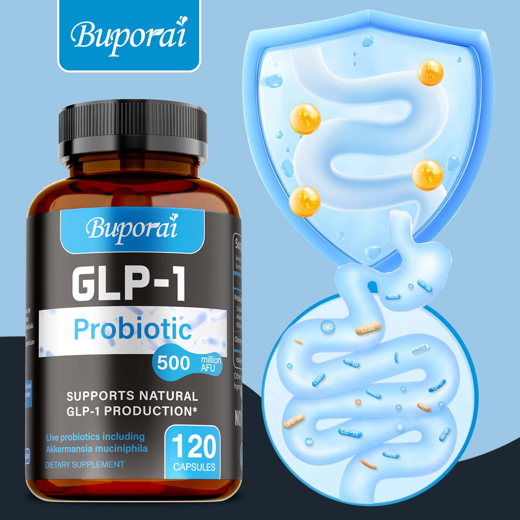 GLP-1 Probiotika - 500 miljoner AFU av probiotika med flera stammar och prebiotika - bibehåll energi och stödj din aktiva livsstil