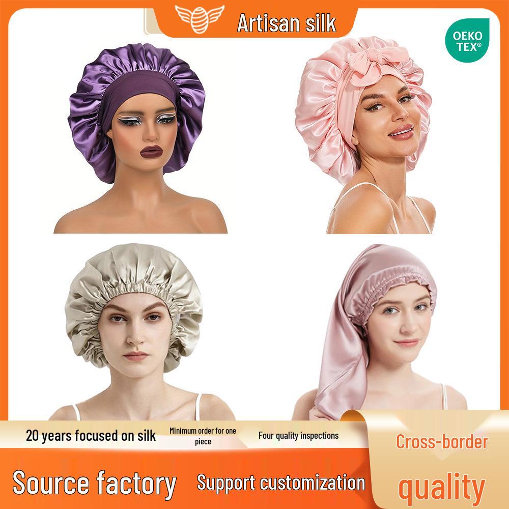 Prawdziwa 100% jedwabna czapka do spania, 16 Momme, Podwójna warstwa, Regulowany elastyczny pasek, Przyjazna po porodzie.
