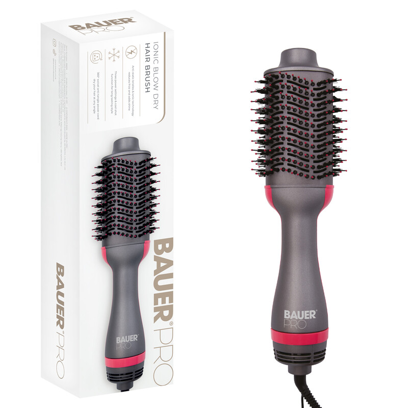 Bauer Hot Air Blow Dry Brush. 1200W Ionic Oval Volumiser, Fast Styling for Medium to Long Hair, Hair Dryer Brush, Grey