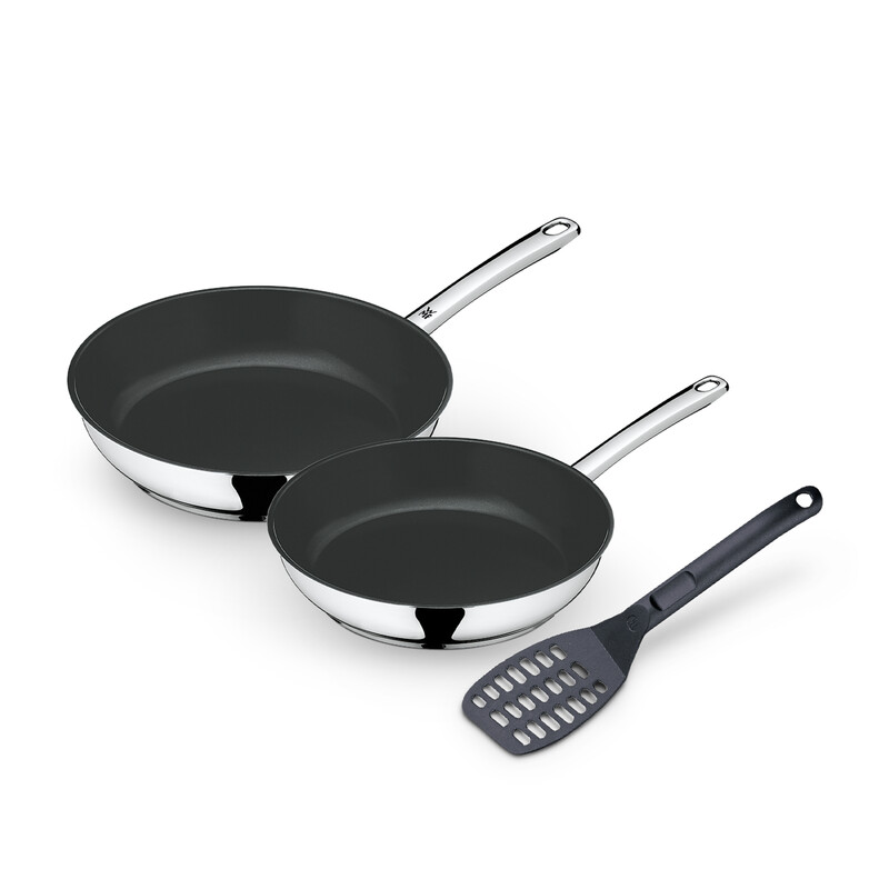 WMF Devil Pfannenset 3-teilig, Bratpfanne Induktion 24, 28 cm, mit Pfannenwender, Cromargan Edelstahl beschichtet, Keramikbeschichtung, backofenfest