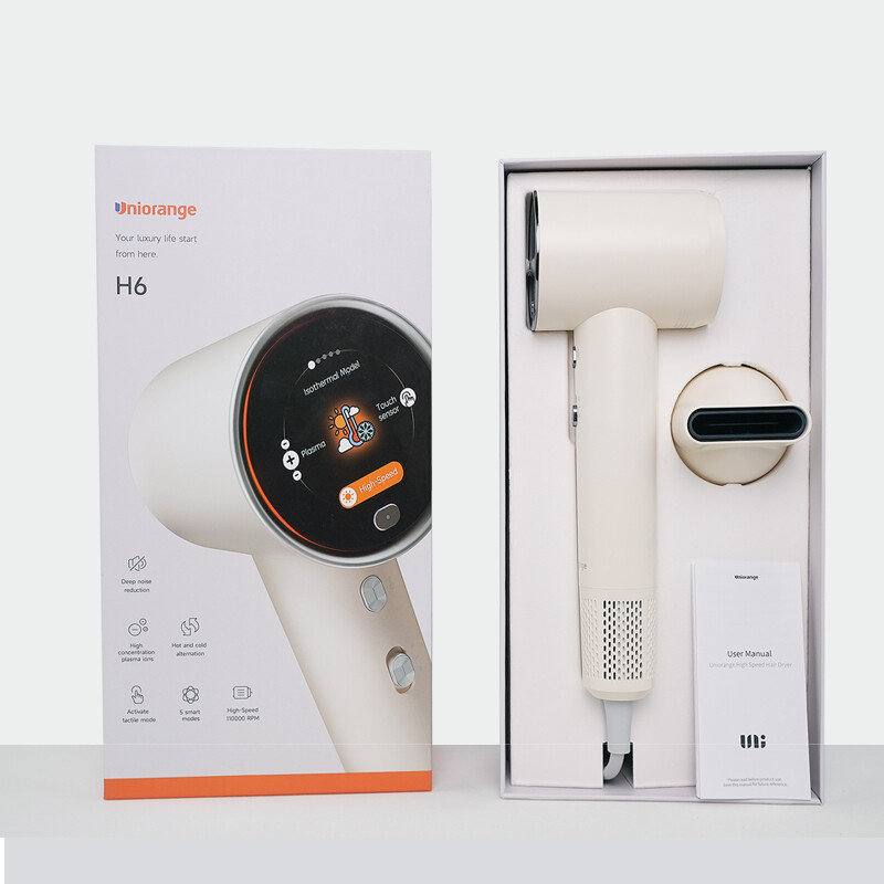 Uniorange H6 Plasma Highspeed-Haartrockner (Mondweiß), HD-LCD-Bildschirm, 5 intelligente Modi, 1600W Leistung und 1 Milliarde Plasma-Ionen, 110.000 U/min Highspeed-Motor, trocknet 5-mal schneller