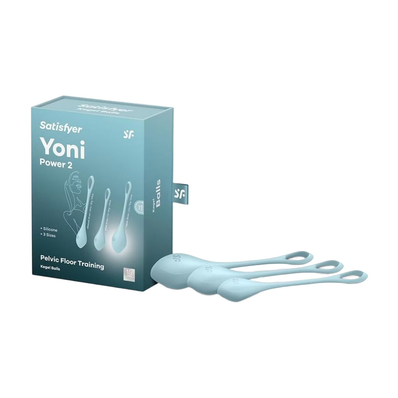 Satisfyer Yoni Power 2 Love Balls, 3er-Set Silikon-Beckenboden-Trainingsbälle, Kegelbälle für Frauen, 22–73 g und 2–3 cm, für Einsteiger und Fortschrittliche, medizinisches Silikon, hellblau