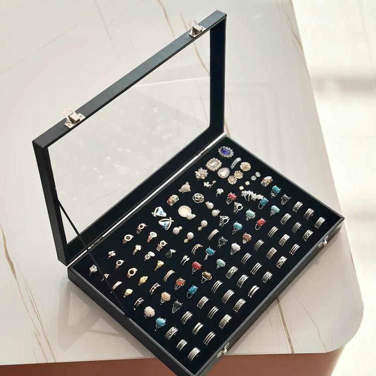 Schmuckkasten aus Holz mit Glasdeckel Eleganter Ring-Präsentationshalter Mehrzweck-Schmuckorganizer Schreibtisch