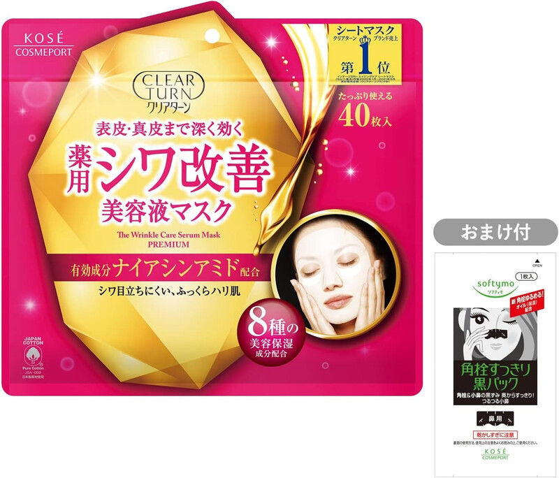 KOSE CLEAR TURN Serum-Gesichtsmasken zur Faltenverbesserung, 40 Stück
