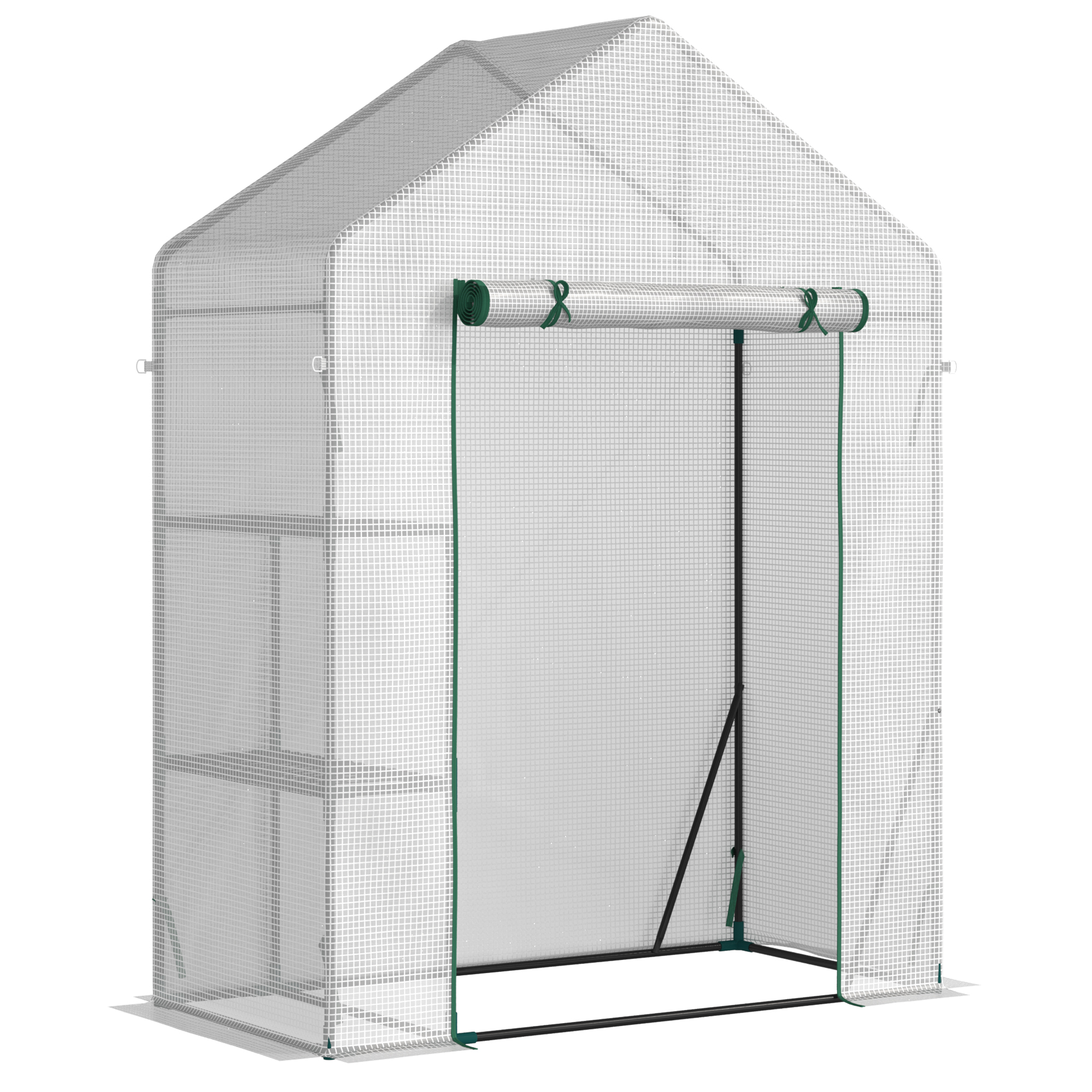 Outsunny Greenhouse for Outdoor, Portable Gardening Plant Grow House w/ 2 Tier Shelf, Roll-Up Zippered Door, PE Cover, 143x73x195cm, Green | Aosom UK