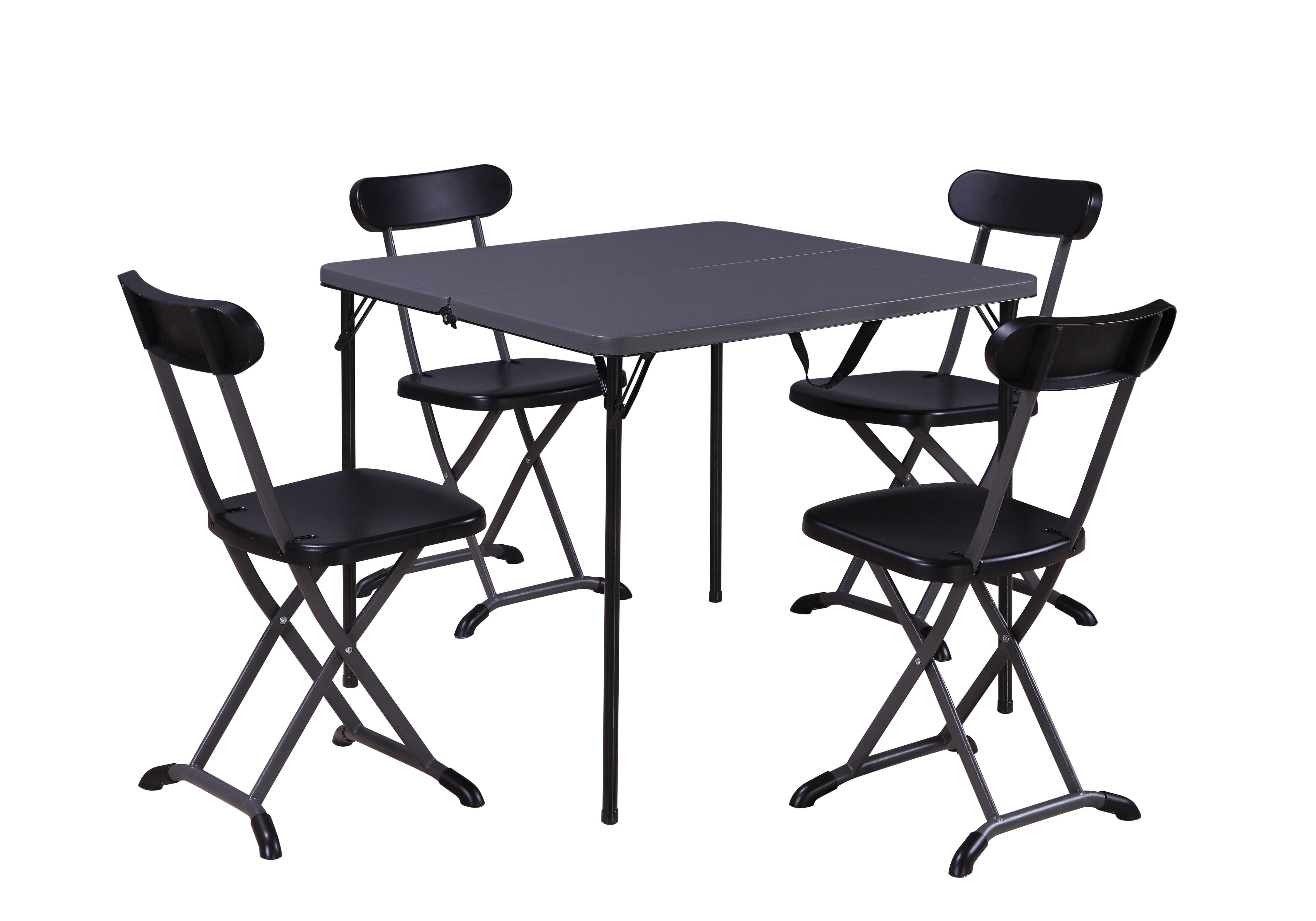 Set Horeca Pieghevole (1 Tavolo 4 Sedie) In Acciaio, Color Antracite, Top In Pe