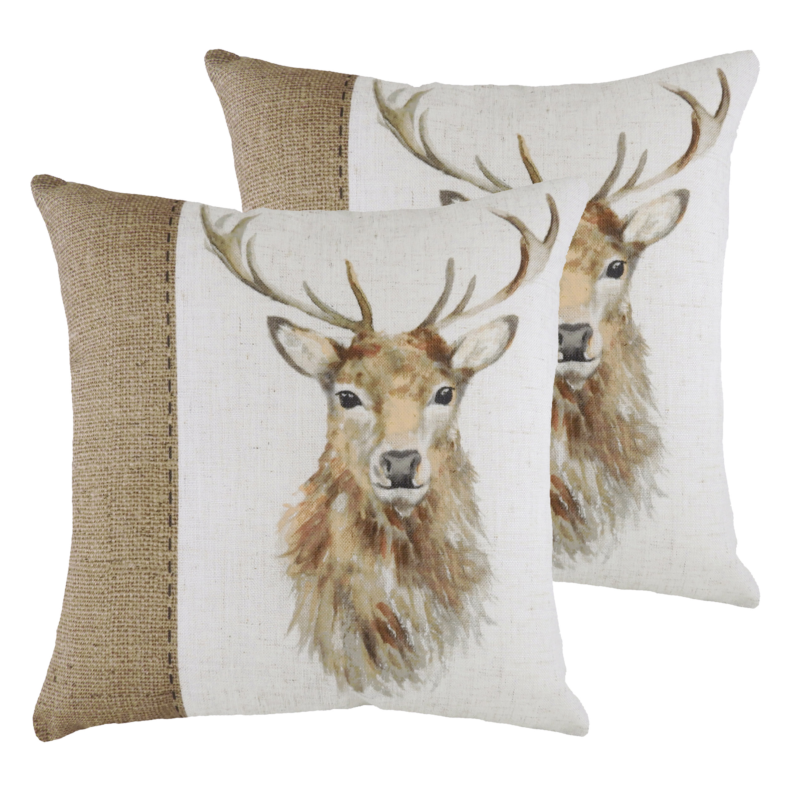 Evans Lichfield Hessian Stag Cushions (twin Pack) - White - Size 43 cm x 43 cm | Evans Lichfield Sale | Discount Designer Brands