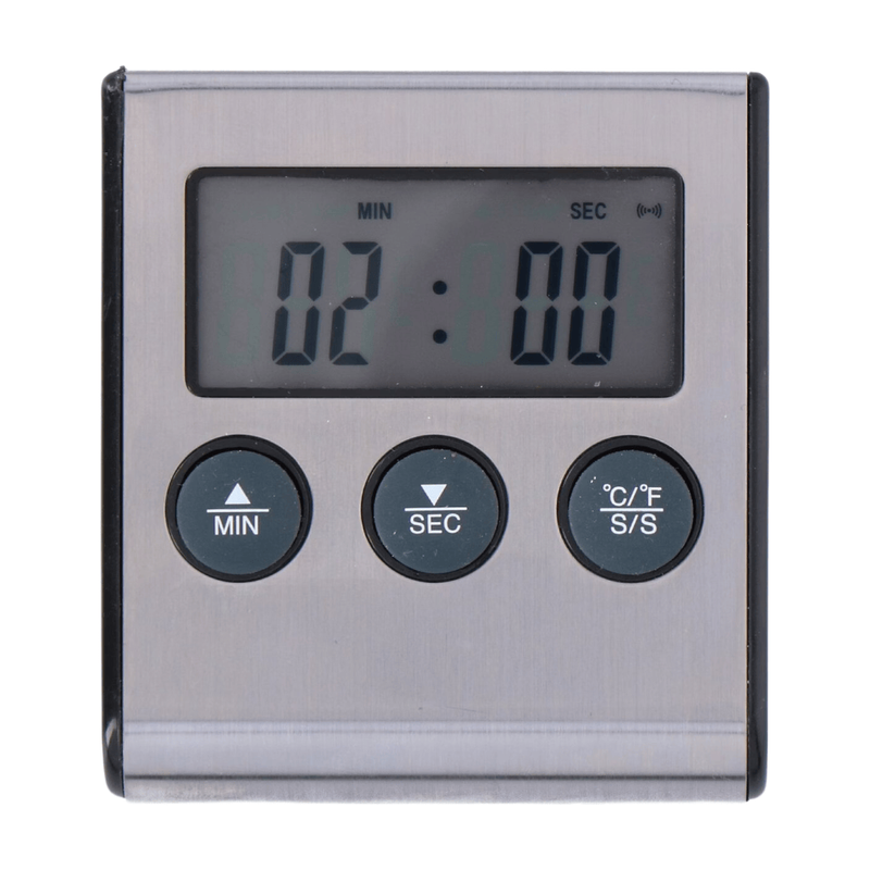 Alpina digitale thermometer & timer, roestvrij staal, zilver, 6,5 x 7 cm, sonde 15 cm, snoer 80 cm