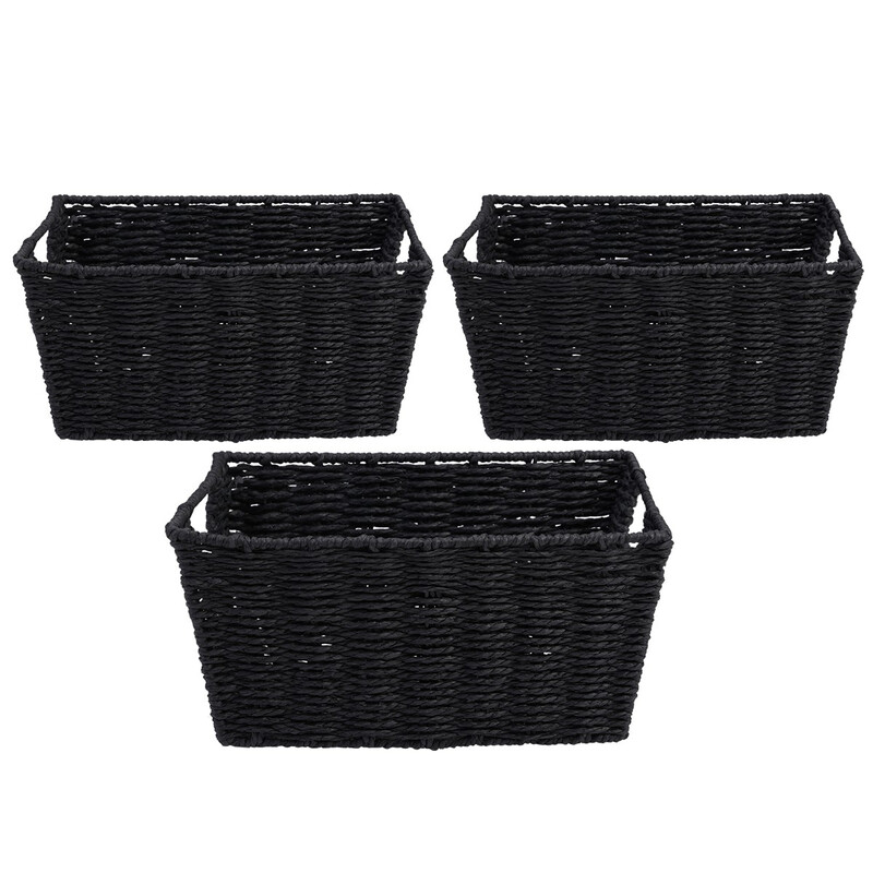 White Label 3 Pack Decorative Woven Paper and Metal Frame Storage Baskets/Organizers, Stackable Cube Bins for Shelves