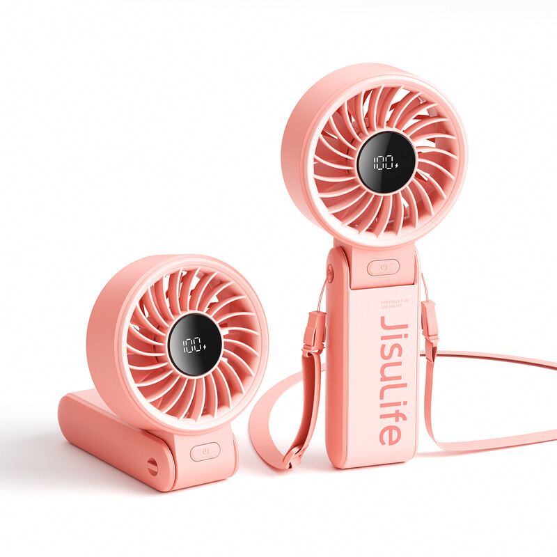 JISULIFE Tragbarer Handventilator Life 7, 5000 mAh wiederaufladbar, Hochleistungs-Motor, LED-Display, 19,5 Stunden Kühlung, 5 Geschwindigkeitsstufen, faltbares Design, 3-in-1, Pink