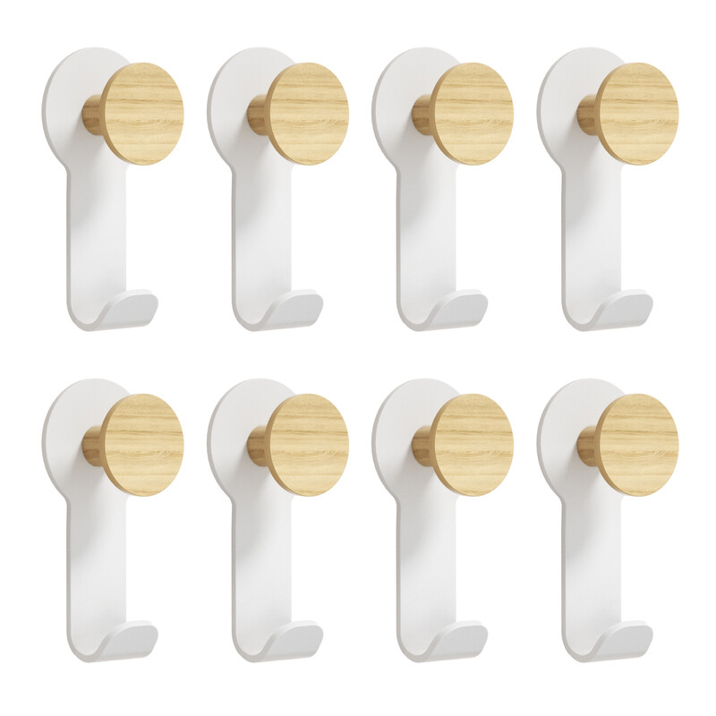 KAPANOU Dual Coat Hooks for Wall mounted Set of 8, Rustic Wooden Hook with Heavy Duty Metal Hanger for Towels, Hats, Backpack, Home Decor Hooks for Door, Bathroom, Bedroom, Entryway (Wood Brown / White), New Year Sale , Top gift picks